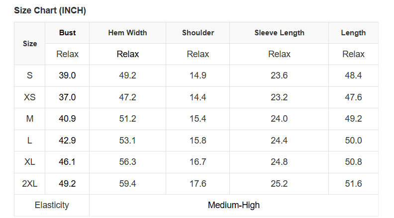 See size chart for approximate measurements.